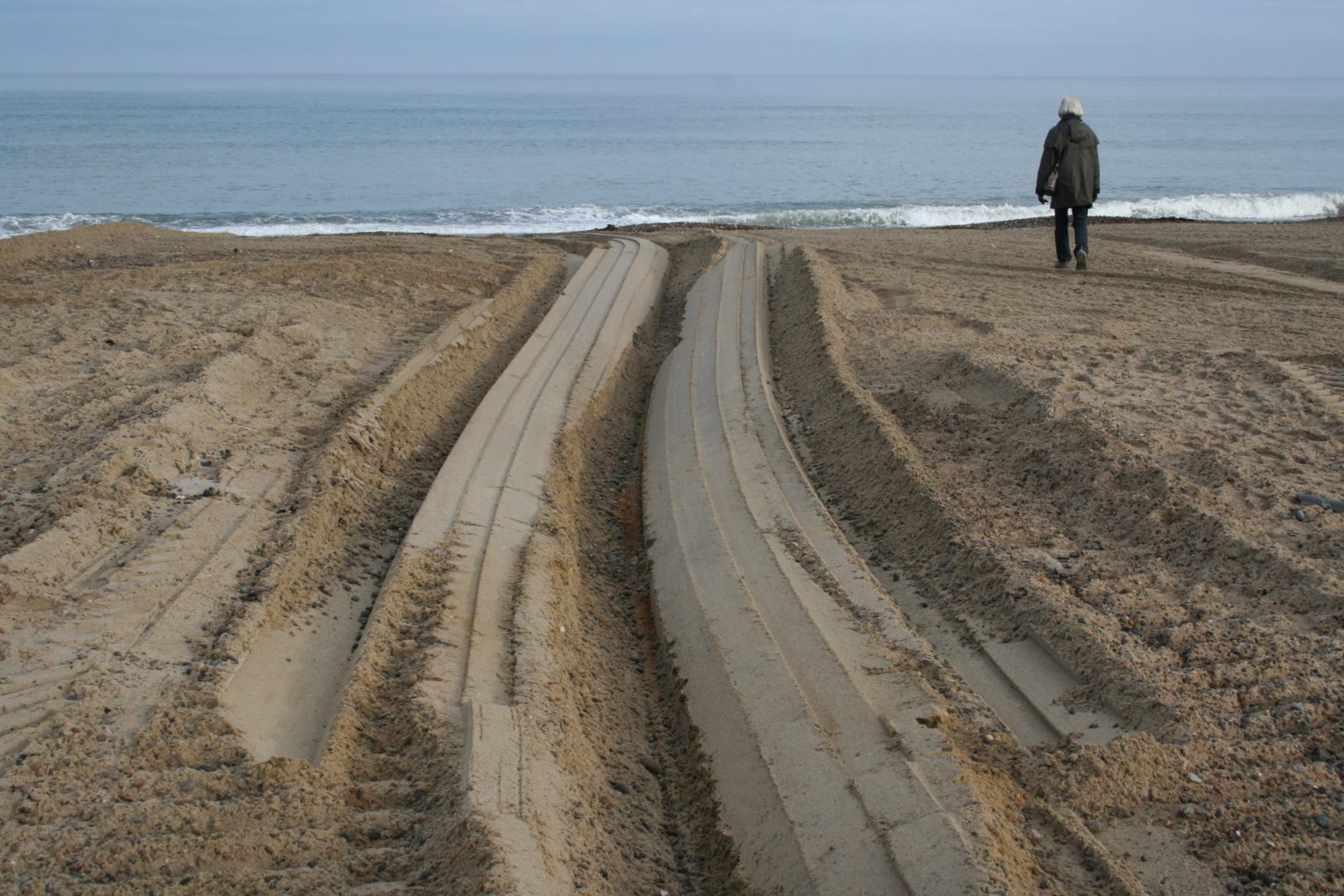 Når kutteren skal til søs, efterlades et tydeligt spor i sandet, som det ses på dette foto.